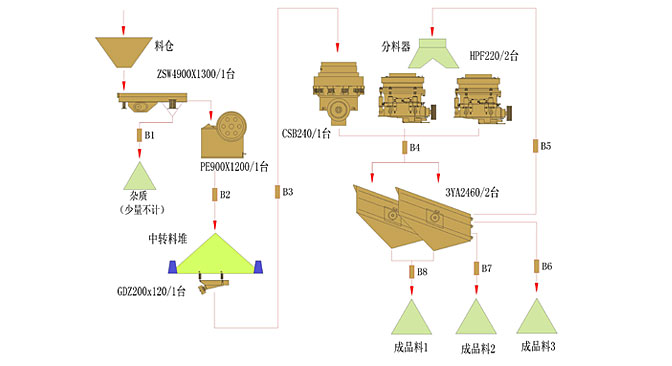 該公司(si)為實力雄厚的大型石料(liao)有限公司(si) 從我司(si)購入(ru)PE900*1200顎破、HPC220圓錐破兩(liang)套、CSB240B圓錐破、ZSW490*130給(gei)料(liao)機、GZD*120給(gei)料(liao)機兩(liang)臺(tai)、3YA2160振動(dong)篩兩(liang)臺(tai)